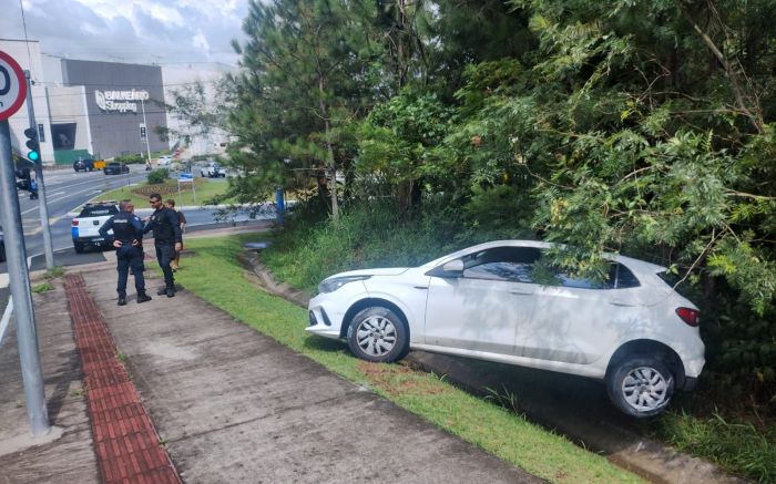 Um Fiat Argo perde o controle, passa entre carros, quase acerta uma moto e vai parar em vala nas margens da avenida Panorâmica, em Balneário Camboriú. O acidente aconteceu no final da manhã desta sexta-feira, por volta das 11h, e foi filmado por câmera de segurança.