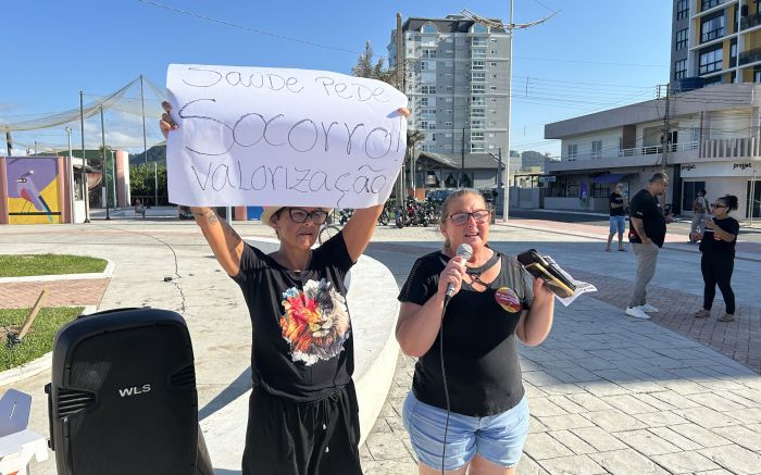Servidores públicos de Navegantes fizeram protesto na tarde de sábado na praça central da praia. O ato, organizado pelo Sindicato dos Servidores da Foz do Itajaí Açu (Sindifoz), reuniu trabalhadores da educação e da saúde que cobram respostas da prefeitura.