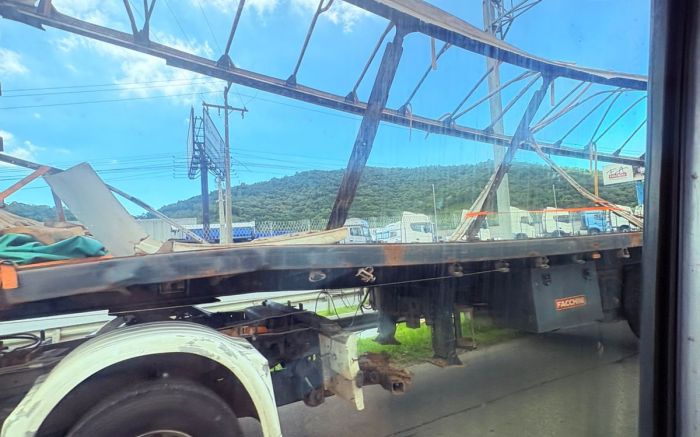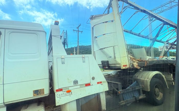 Por volta das 7h30, equipes da concessionária Arteris Litoral Sul foram chamadas para um engavetamento entre dois caminhões no km 112,5, no sentido Curitiba.