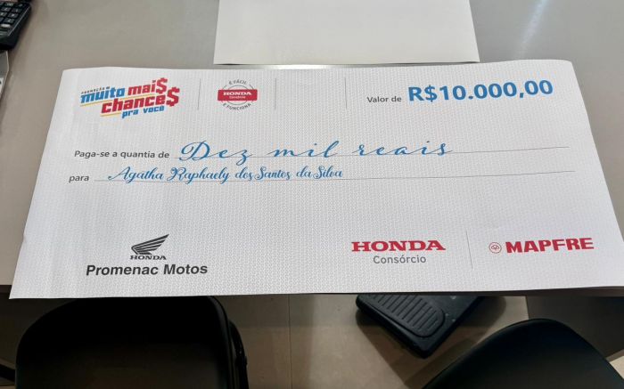 Jovem de 18 anos leva R$ 10 mil em campanha da Honda