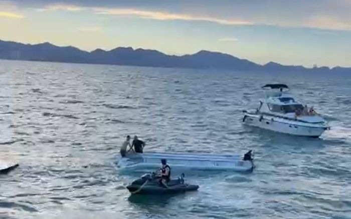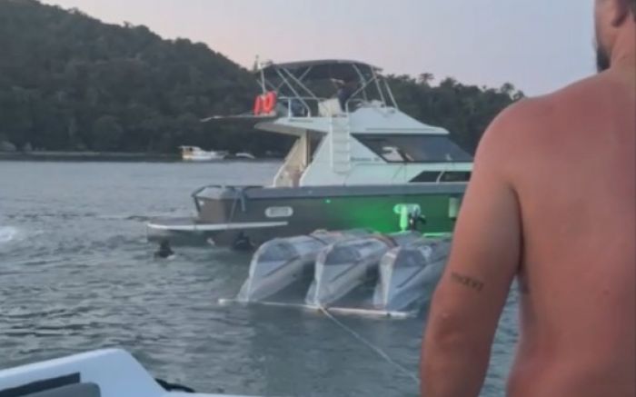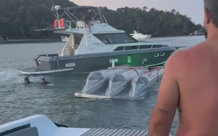 Embarcações ajudaram a desvirar a embarcação diferentona no Caixa d’Aço