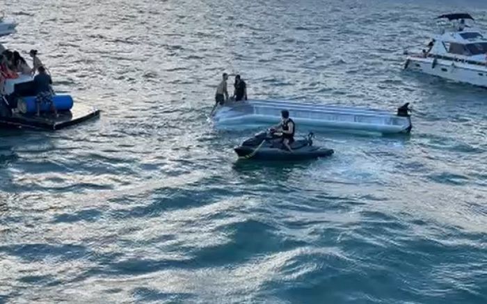 A Kombi foi adaptada sobre flutuadores para passeios turísticos. Em vídeo gravado no acidente, um homem relata que todos estavam bem, inclusive crianças que estavam na embarcação.