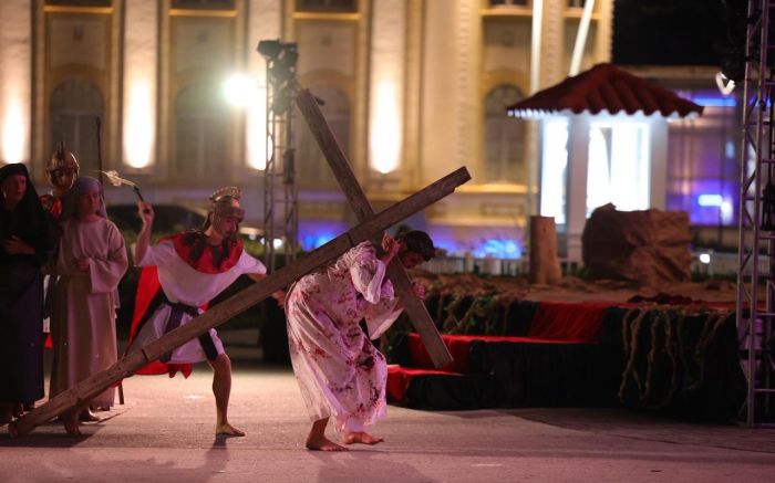Encenação da Paixão de Cristo emociona público no Largo da Matriz