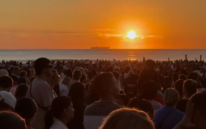 O encontro começou às 5h e reuniu fiéis para momentos de oração e adoração em um ambiente aberto e coletivo. A organização foi da Epiphany Movement, ligada à igreja We Are Reino. Na praia, os participantes cantaram, rezaram e participaram da manifestação religiosa.