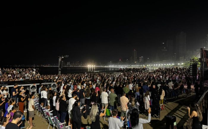 Uma multidão ocupou a orla da Praia Central de Itapema na madrugada de sexta-feira santa para demonstrar a fé em forma de oração. Cerca de 10 mil pessoas acompanharam, diante de um telão, a novena conduzida por Frei Gilson, um dos religiosos mais populares do país nas redes sociais.