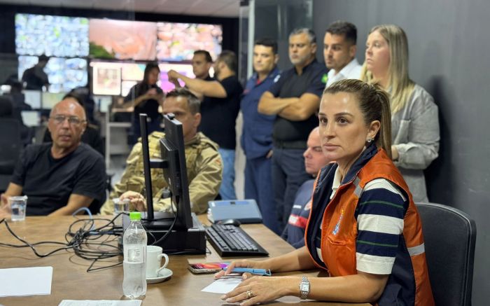 A prefeita Juliana Pavan determinou reforço máximo das equipes das secretarias e autarquias nas ruas. O município segue em alerta vermelho para risco de deslizamentos.