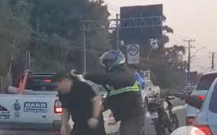 Um vídeo registrou o momento em que um motociclista agrediu violentamente o motorista de um carro ...