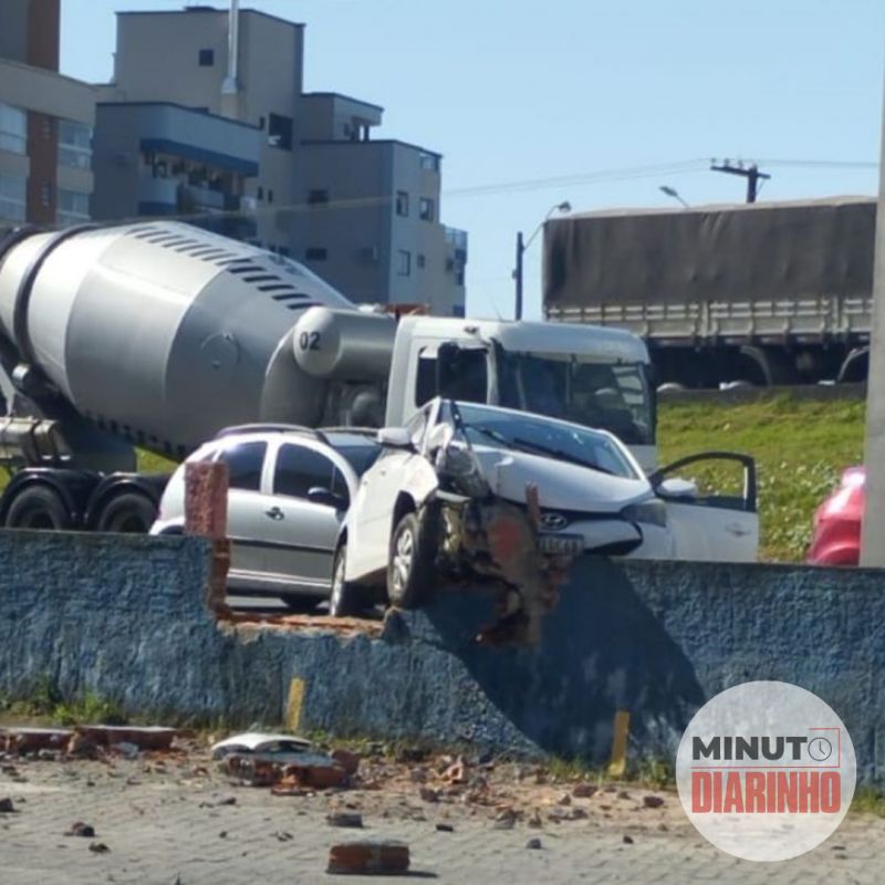 Carro acerta mureta de proteção na marginal da BR 101. Motorista jogou o carro para o lado para desviar ...