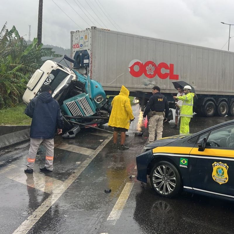 - Carreta com toras de madeira tomba na BR 101;