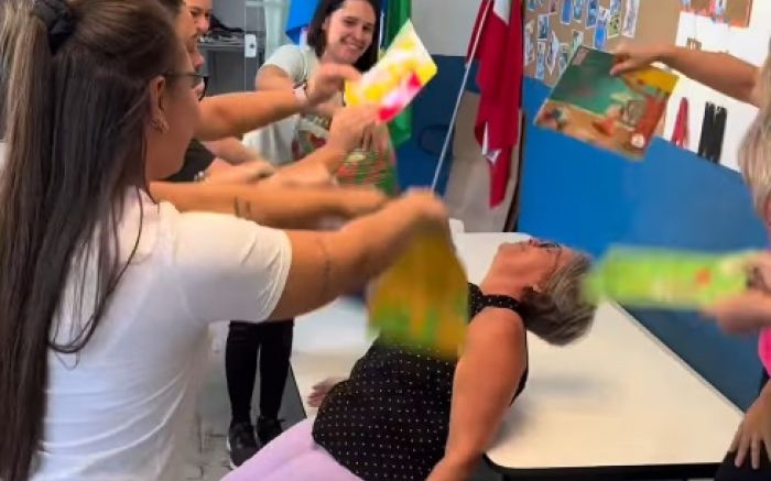 Professoras, merendeiras, gestoras e a equipe de segurança de uma creche de Penha representaram, com muito bom humor, um esquete viral na internet, original do humorista Diogo Almeida (@odiogoalmeida), ...